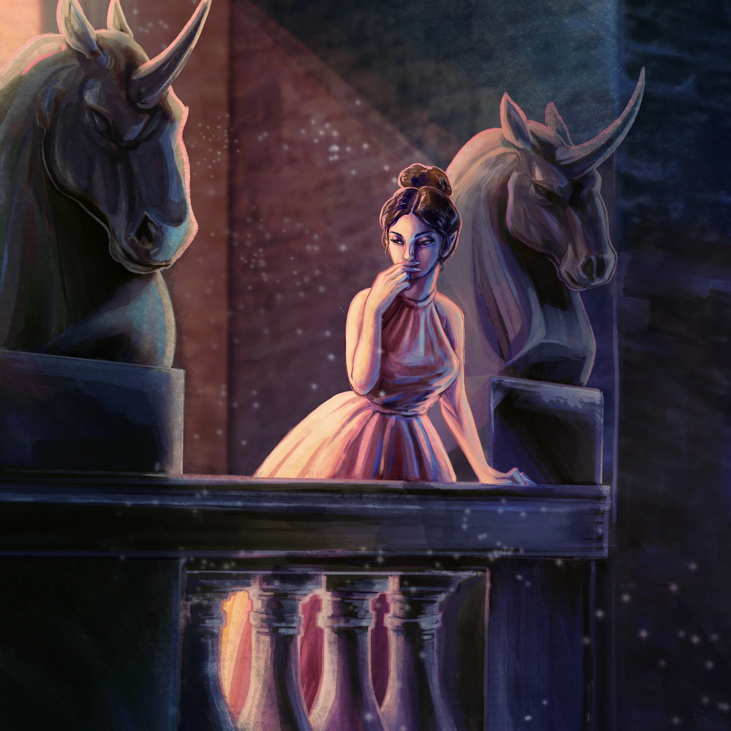 Constance Koh is a bit of a wallflower, that’s exactly how she prefers to be. She is a young and pretty half-elf, with a modest dress and simple hairstyle that allow her to blend in with the high-society crowd. None of the other guests seem to know her well, or even recognize her at all (she might have been at that one party last year, you remember? But I can’t quite recall...). A few older guests keep their distance and whisper among themselves upon hearing the Koh name, but no one is gauche enough to speak openly on the matter.